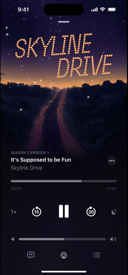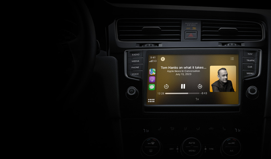 CarPlay lets you listen seamlessly from your iPhone in your car, bringing the same in‑depth experience to your vehicle’s built‑in controls.2 You can even ask Siri to play the latest episode or control playback. And Apple Podcasts comes preinstalled in select car models.