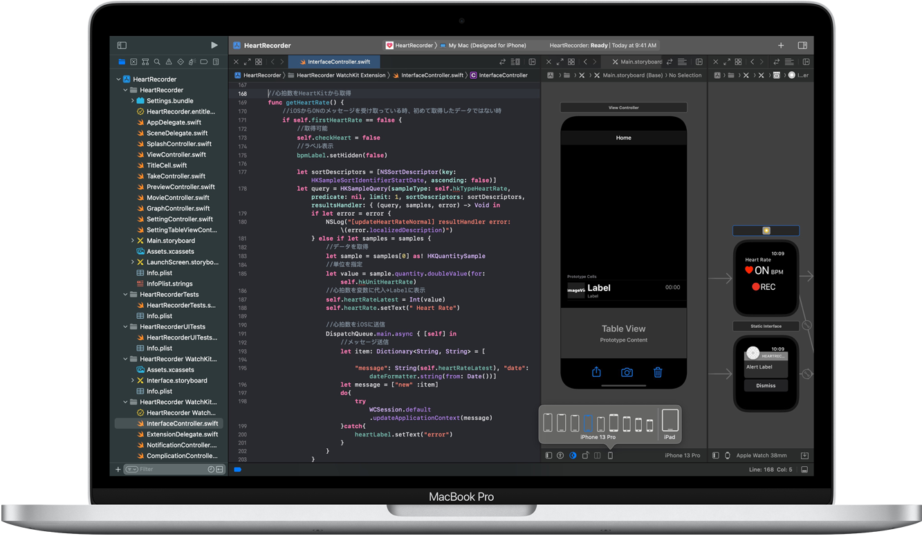 MacBook Pro. Xcode and Swift on Mac with HealthKit empower them to build a solution — an iOS app and a watchOS app that work together to capture and record students’ real-time heart rates and physical reactions during activities.