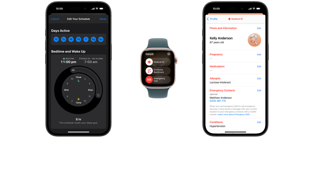 On iPhone and Apple Watch, emergency personnel can quickly access a Medical ID with important information like allergies, blood type, emergency contacts and more.