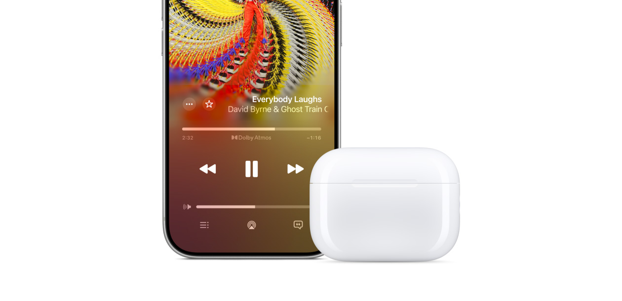 ضعها بجانب iPhone واتّبع التعليمات التي تظهر على الشاشة. واستخدم ميزة التبديل التلقائي لتتصل AirPods مباشرة بأي جهاز تستمع إليه. ما عليك سوى الضغط على زر التشغيل.15