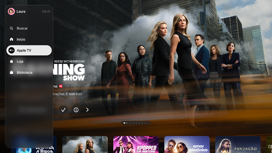 A Apple TV 4K reúne seus serviços Apple favoritos e todos os seus apps de streaming com a nossa mais alta qualidade de som e imagem. Com o FaceTime na TV1, você traz as pessoas que ama para conversar na sala. Seu iPhone vira microfone no Apple Music Sing. E, com a interação total com seus aparelhos e acessórios inteligentes2, a experiência Apple que você adora ganha um visual mais vibrante do Liquid Glass no tvOS.
