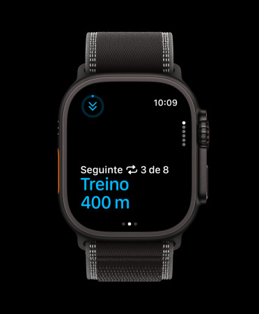 Com o Ultra 3 você nunca perde o ritmo. O Apple Music pode recomendar a melhor playlist com base no seu treino e nas músicas que você gosta6. Ou só escolha uma das sugestões de playlists ou podcasts.