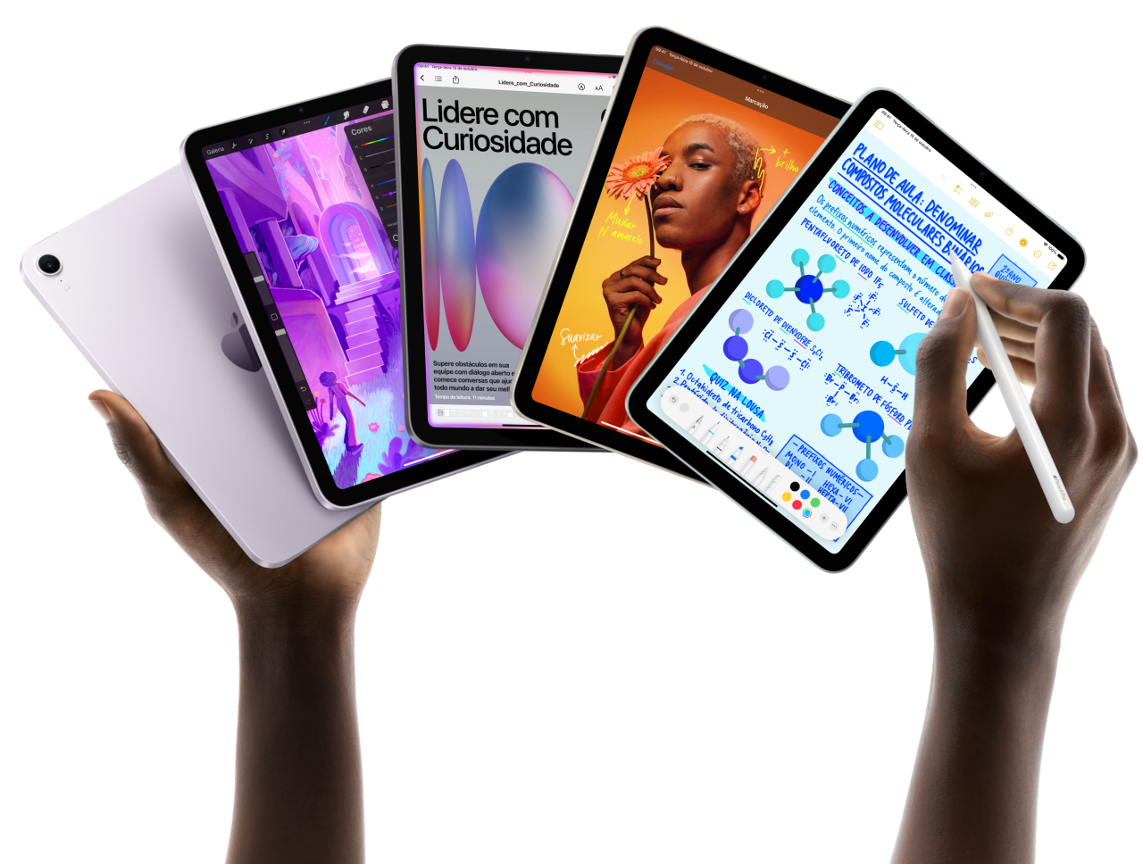A tela Liquid Retina de 8,3 polegadas tem True Tone, ampla tonalidade de cores P3 e refletividade ultrabaixa, que deixa os textos nítidos e as cores vibrantes em todos os ambientes1.