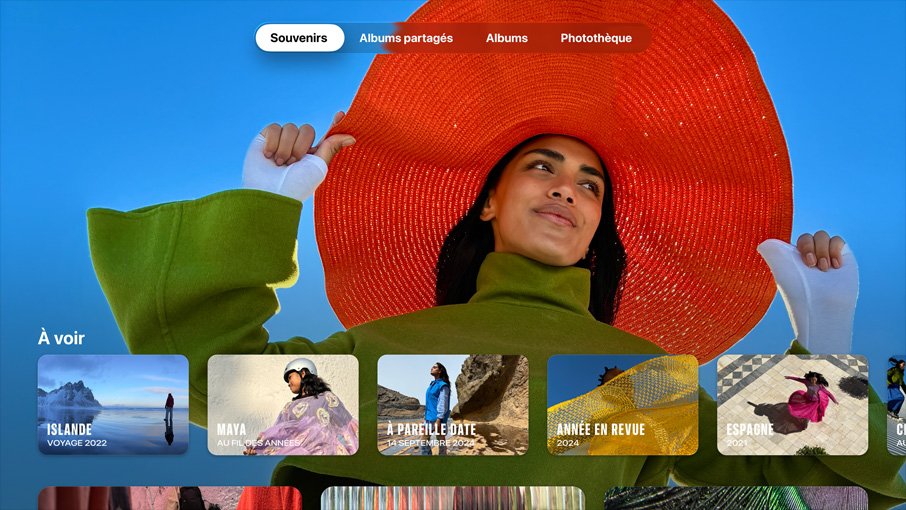 Photos. Avec la photothèque partagée iCloud, c’est plus facile que jamais de partager des images en famille et d’en profiter directement sur votre télé. Vous pouvez même sélectionner vos souvenirs comme économiseur d’écran pour revivre vos plus beaux moments.