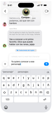 Activa Traducción en Vivo para traducir textos automáticamente en Mensajes1, leer subtítulos generados en vivo mientras usas FaceTime y escuchar traducciones habladas durante una llamada en la app Teléfono.2