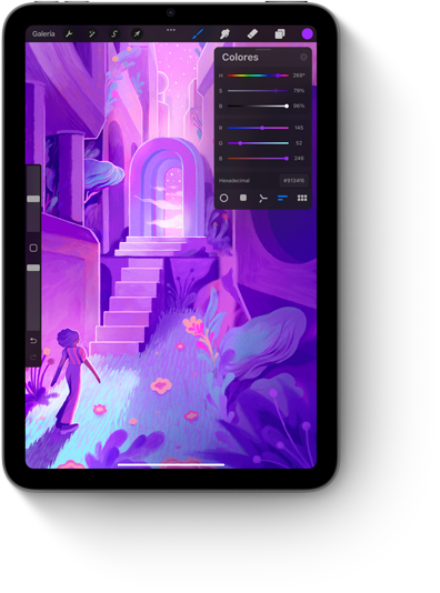 Varios modelos de iPad mini en horizontal y en vertical muestran apps como Marcado, Calculadora, Libros, Logic Pro para el iPad, ForeFlight, Notas, Zinnia, Procreate, Adobe Lightroom e Infinity Nikki.Varios modelos de iPad mini en horizontal y en vertical muestran apps como Calculadora, Libros, ForeFlight, Procreate y Adobe Lightroom.