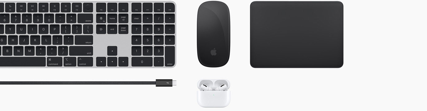 Magic-tilbehør er trådløst, genopladeligt, præcist og behageligt. Og nu fås det også i farvekombinationen sølv og sort, som passer godt til det stramme Studio Display-design. Prikken over i’et på dit skrivebord.