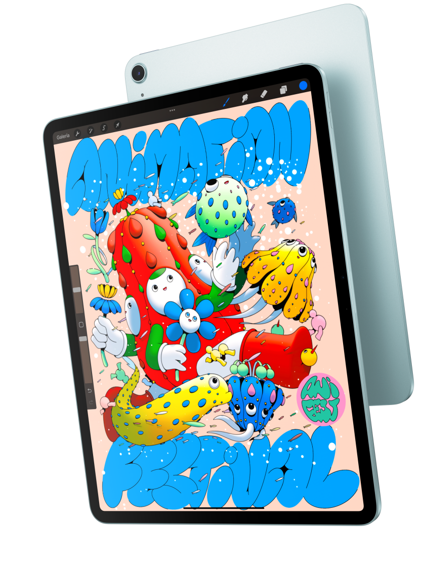El iPad Air viene en dos tamaños de 11 o 13 pulgadas. Elijas el que elijas, vas a ver el mundo de otro color gracias a la espectacular pantalla Liquid Retina con respuesta inmediata y una imagen en alta resolución brillante a todas luces.