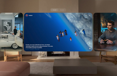 Plongez dans l’app Galerie spatiale et explorez une collection en constante évolution de photos, vidéos et panoramas spatiaux sélectionnés par Apple. Découvrez des perspectives uniques et originales créées par des esprits visionnaires, suivez les contenus de marques iconiques et explorez les coulisses sur Apple Music et Apple TV+.