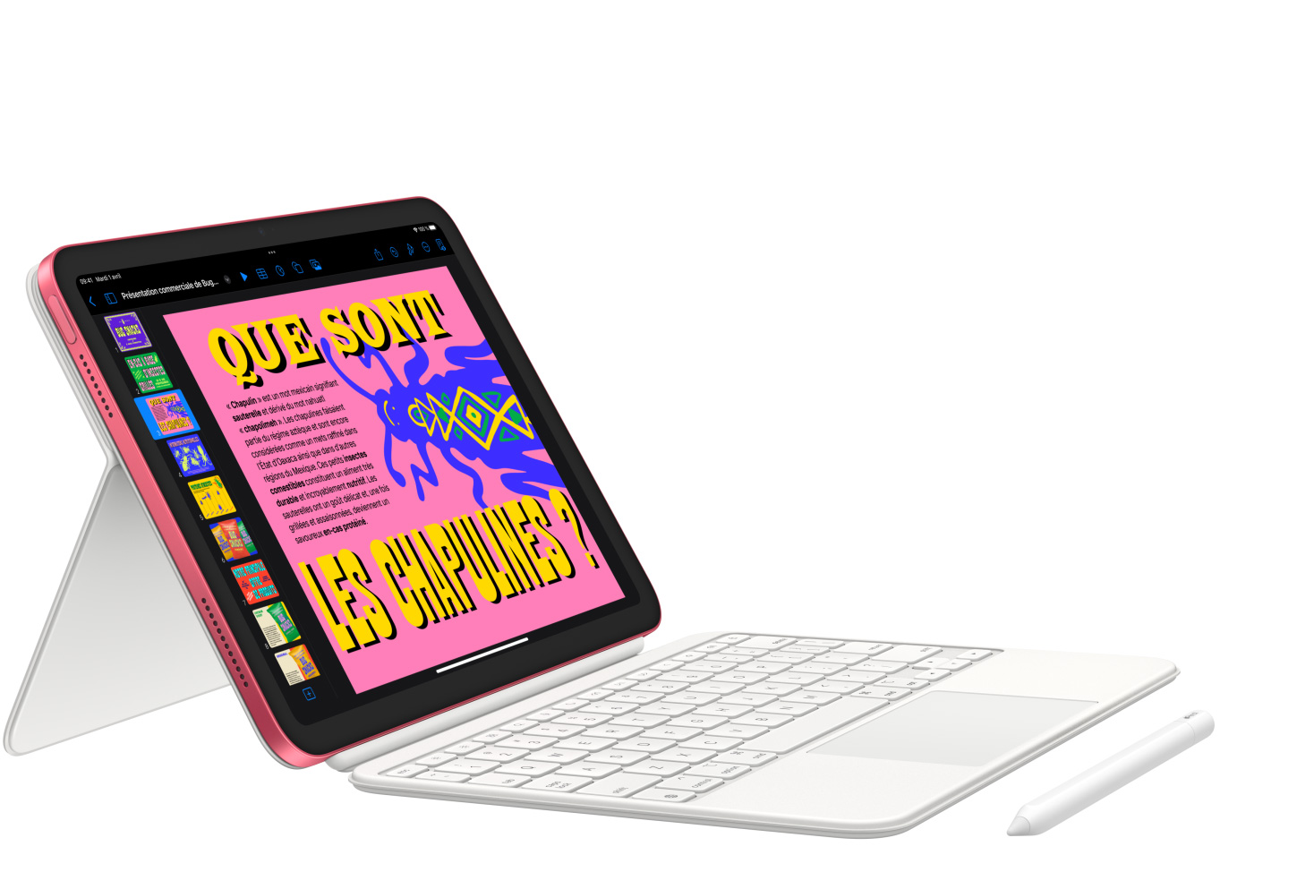 Avec les accessoires essentiels conçus spécialement pour iPad, tout devient possible. Faites des merveilles avec l’Apple Pencil et le Magic Keyboard Folio. Choisissez un Smart Folio coloré pour protéger l’avant et l’arrière de votre appareil. Et connectez-vous à des disques durs, des docks ou encore des écrans grâce au port USB‑C2.