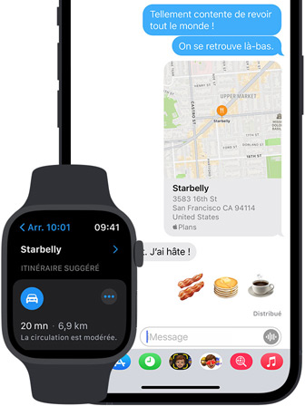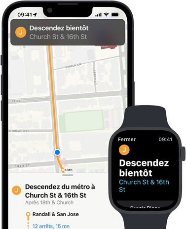 Profitez d’une expérience fluide et ininterrompue sur tous les appareils Apple que vous utilisez pour vous déplacer. Les retours haptiques de l’Apple Watch vous poussent dans la bonne direction et vous évitent de devoir sortir votre iPhone lorsque vous êtes à pied. Sur Mac, les alertes de Calendrier vous indiquent quand il est l’heure d’arrêter de travailler et de partir. Une simple demande, et le HomePod trouve votre itinéraire pour l’envoyer sur votre iPhone quand vous quittez la maison. Enfin, Plans se synchronise automatiquement avec Siri, Spotlight, Messages et Météo pour vous donner des informations pertinentes au moment où vous en avez le plus besoin.