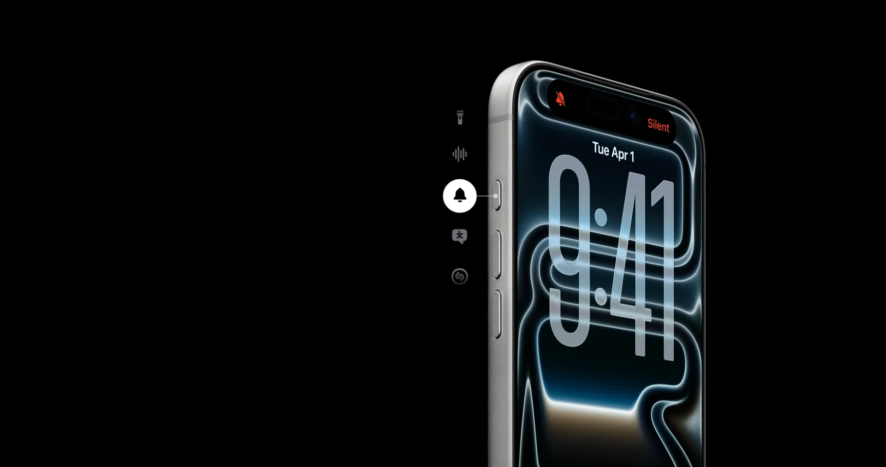 Action button. A customizable fast track to your favorite feature. Long press to launch the action you want — Silent mode, Translation, Shortcuts, and more.