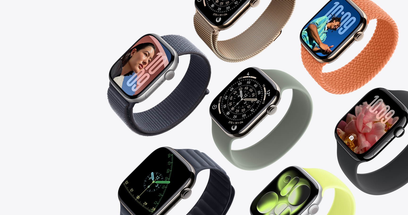Apple Watch Series 11 uređaji, aluminijska kućišta, ružičasto zlatna i polirano mrak crna boja, sigurnosne značajke na zaslonu: zdravstvena karta, povratak s kompasom, hitan poziv, animacija, sportski remeni, rumene i crne boje