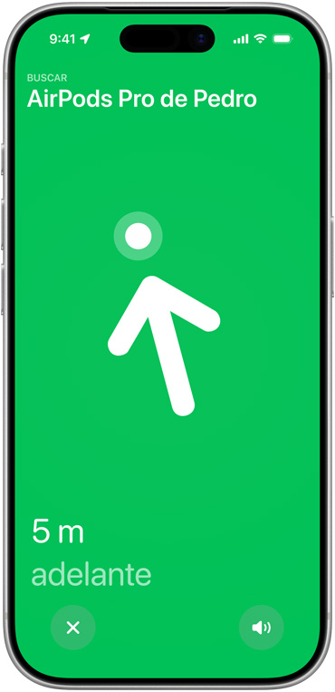 Encuentra tus AirPods Pro exactamente donde los dejaste. El estuche de carga incorpora una nueva generación de banda ultraancha que aumenta la distancia de Rastreo Preciso 1.5 veces.9 Y gracias a la bocina incorporada en el estuche, podrás encontrar tus AirPods aunque se hayan escondido en el recoveco más recóndito de tu sofá.