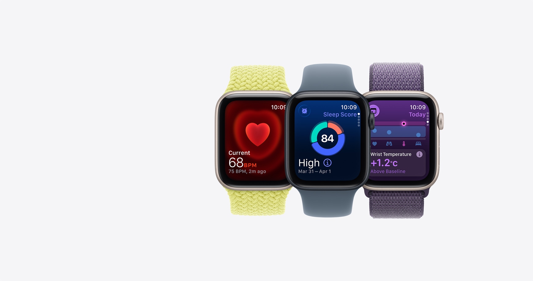 Greitai peržiūrėk naktinius sveikatos duomenis tiesiai ant savo riešo – įskaitant širdies ritmą, kvėpavimo dažnį, riešo temperatūrą, deguonies lygį kraujyje ir miego trukmę – ir gauk pranešimą, jei tavo rodikliai kada nors nukryps nuo įprasto diapazono.8