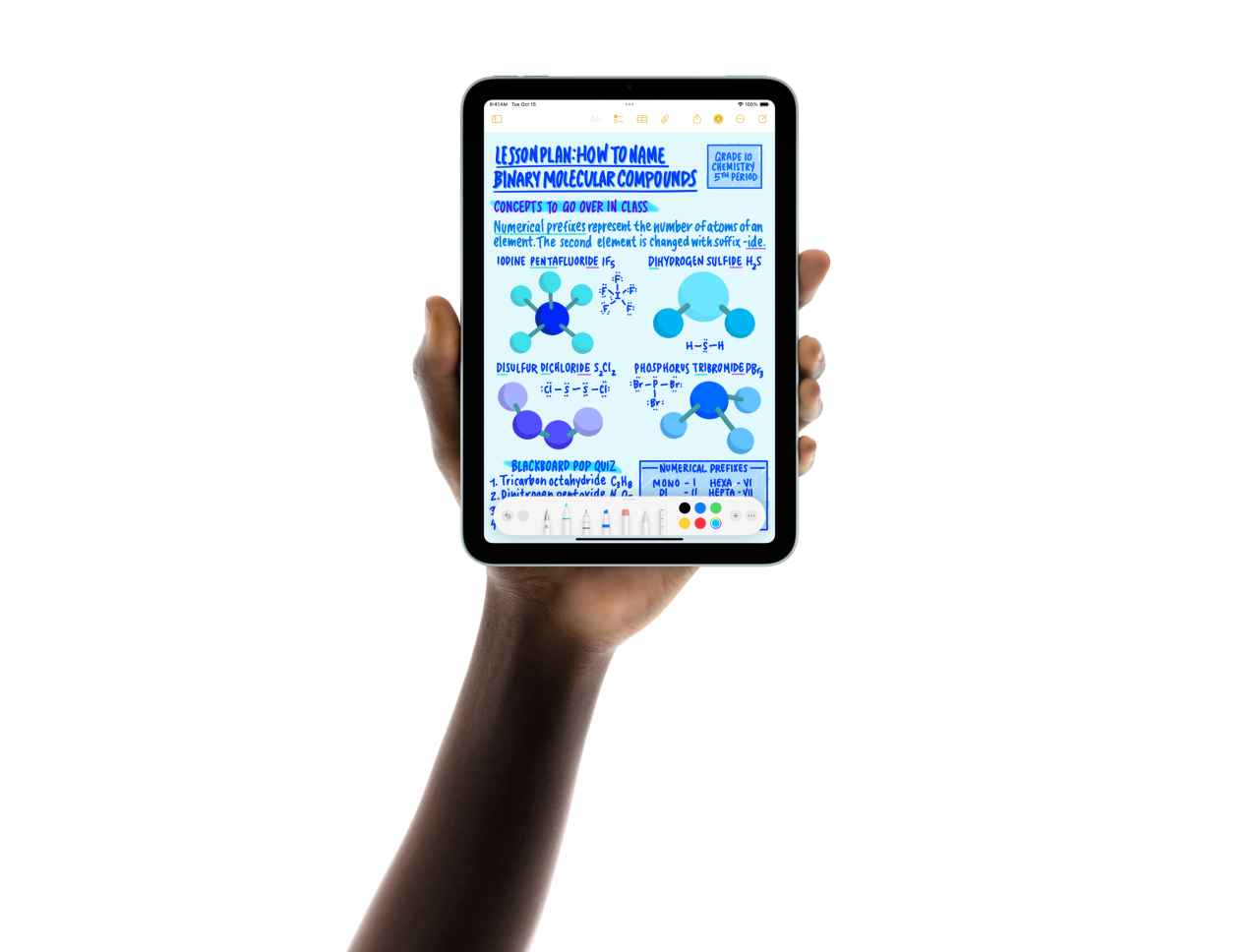 Avec iPadOS, l’iPad mini est encore plus polyvalent. Personnalisez votre écran d’accueil, peaufinez votre écriture manuscrite avec Smart Script, et utilisez l’Apple Pencil pour évaluer des expressions et tracer des graphiques dans Notes mathématiques.