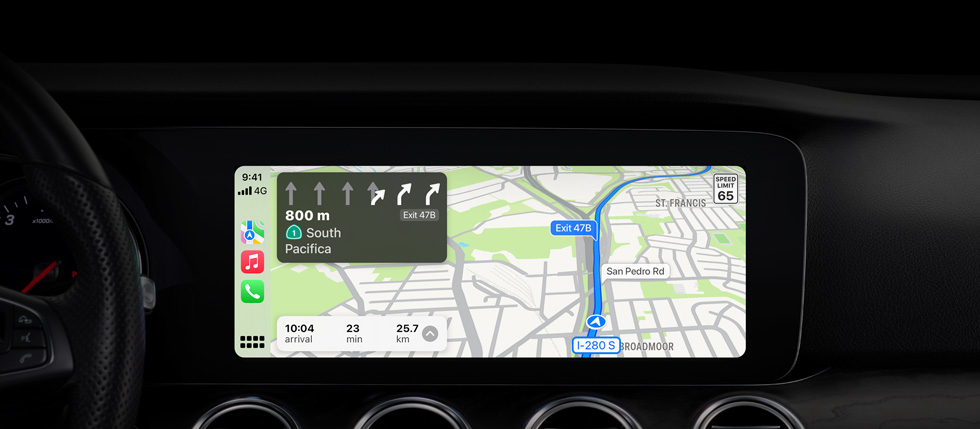 CarPlay brings the power and simplicity of Maps behind the wheel. It can make intelligent suggestions based on data you already store on your device, like addresses from your email, text messages, contacts and calendars. And with a detailed map, turn‑by‑turn spoken directions and immersive 3D experiences, it’s easier than ever to get where you need to go.