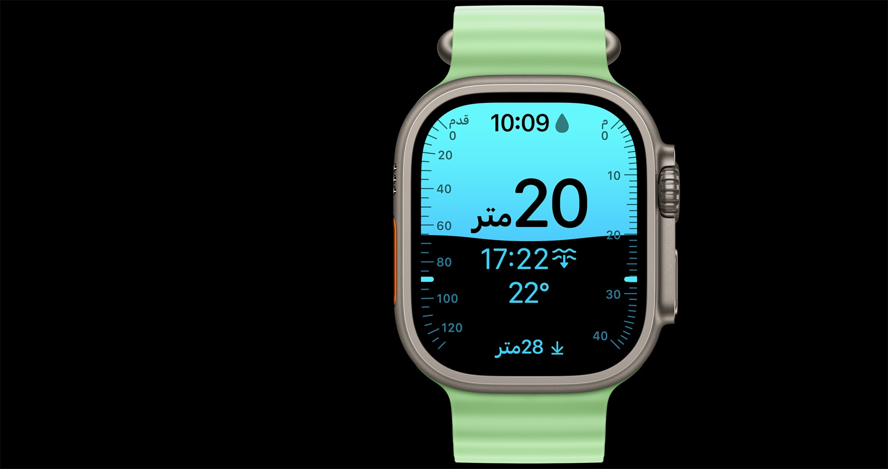 صُمم تطبيق +Oceanic بالتعاون مع Huish Outdoors، وهو يحوّل Ultra 3 إلى كمبيوتر غوص بقدرات كاملة يشغّل خوارزمية Bühlmann لتخفيف الضغط تحت الماء.14 فقط دوّر التاج الرقمي لتحصل على معلومات مهمة ومفيدة بسرعة. تطبيق +Oceanic مزوّد بمختلف تحذيرات السلامة التي قد تحتاجها، وهو يحسب معايير الغوص ويراقبها باستمرار.