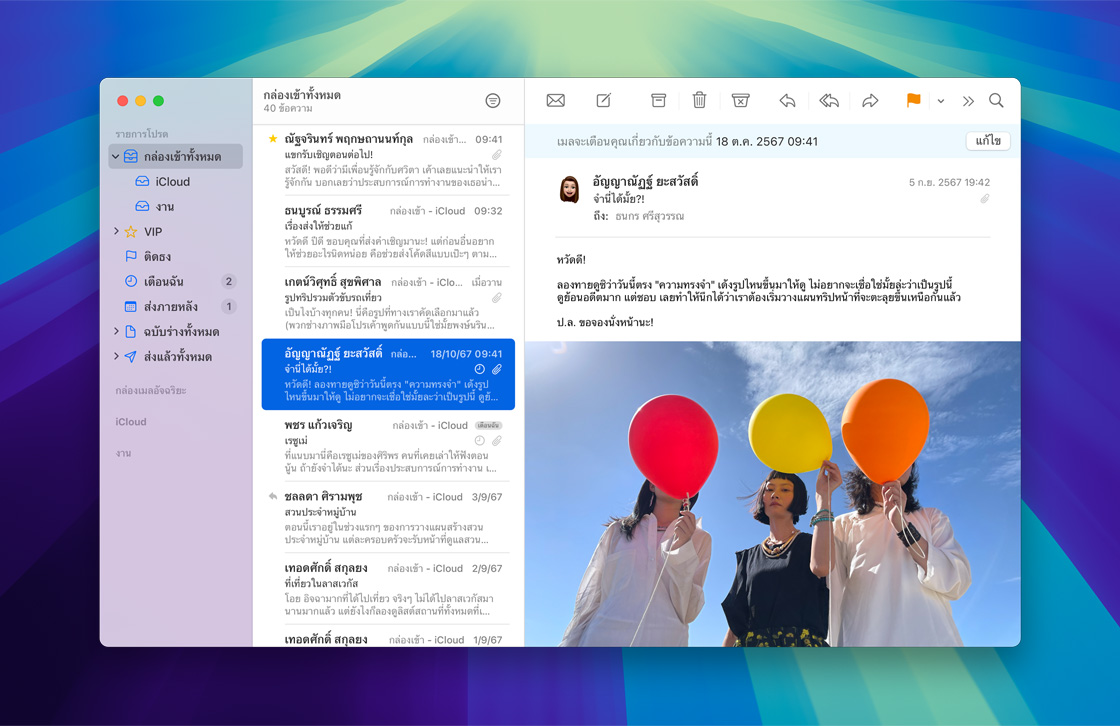 เมล iCloud ทำงานร่วมกันเป็นหนึ่งเดียวกับ