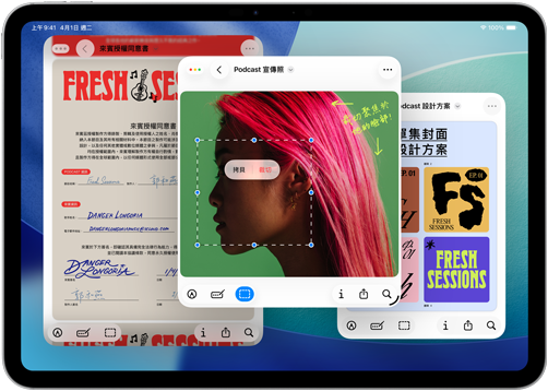 向左或向右滑動,就能調整視窗排列。現在,你還可以把 iPad 的螢幕分成三等分或四等分來使用。